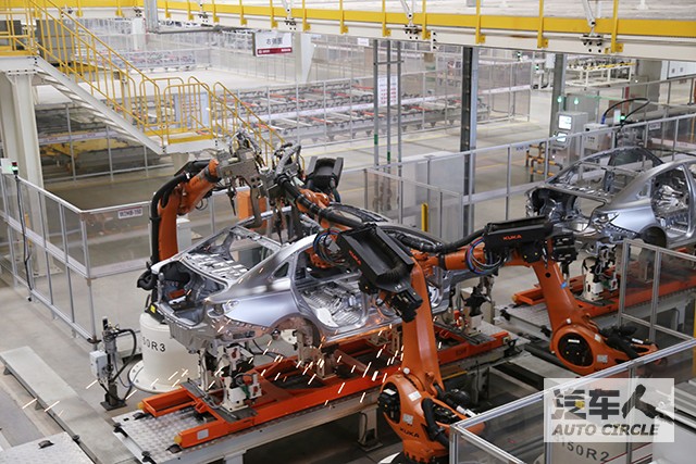 焊裝車間,175臺德國KUKA機器人集體操作,在線激光測量設備ACS、機器人抓件視覺引導系統(tǒng)更提升了焊接的精準度。涂裝車間和總裝車間均采用越級的標準,不論是供應商還是設備,抑或是技術標準幾乎與北京奔馳一致。