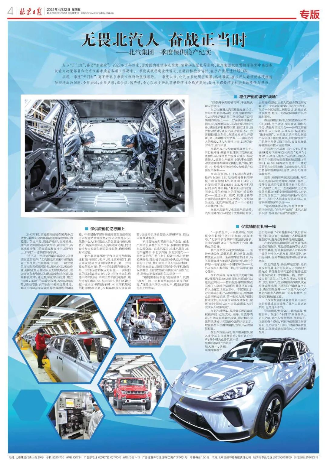 Since the beginning of the year,facing the multi-point spread of the domestic pandemic,tight supply of chips and other impacts,BAIC Group has actively implemented the major decisions and arrangements of the Central Committee of C.P.C and the State Council and the work requirements of Beijing Municipal Party Committee and Municipal Government. It has achieved steady performance growth,and its main indicators have operated steadily. In the first quarter, its output value in Beijing exceeded the planned output value by 10%. On April 22,Beijing Daily made a special report on this.