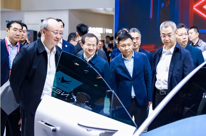 4月26日下午,市委書記尹力,市委副書記、市長殷勇到順義區調研時,來到北京國際車展,在北汽集團展臺察看最新車型和創新產品展示。